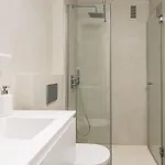 Diese Unterkunft verfügt über einen Balkon und eine Sitzecke. Es ist zudem mit einem Sofa und modernen Annehmlichkeiten wie einem Flachbildfernseher mit Satellitenkanälen ausgestattet. Dieses am Strand Apartment hat 1 Schlafzimmer. Es gibt 1 Bad mit einer getrennten Toilette und einer Dusche und einem Haartrockner und Handtüchern.